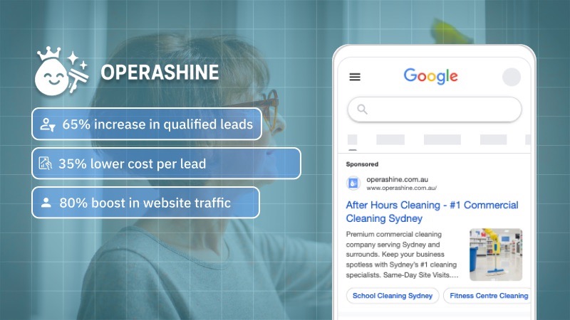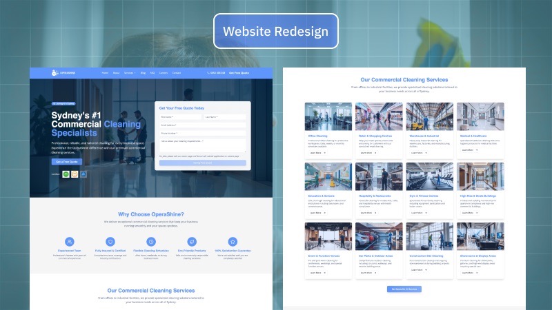 Every touchpoint — from ad copy to website design — reinforced OperaShine’s premium and reliable image as Sydney’s #1 commercial cleaning specialist.